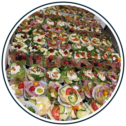 Unsere Snacks Die schnelle Brotzeit zwischendurch! • Belegte Baquettes • Belegte Fladenbrote • Hamburger mit hausgemachten Patty • Panini frisch aus dem Kontaktgrill • Belegte Stangen • usw. Leckere Delikatess Salate aus eigener Herstellung • Wurstsalat • Käsesalat • Schinkensalat • usw.